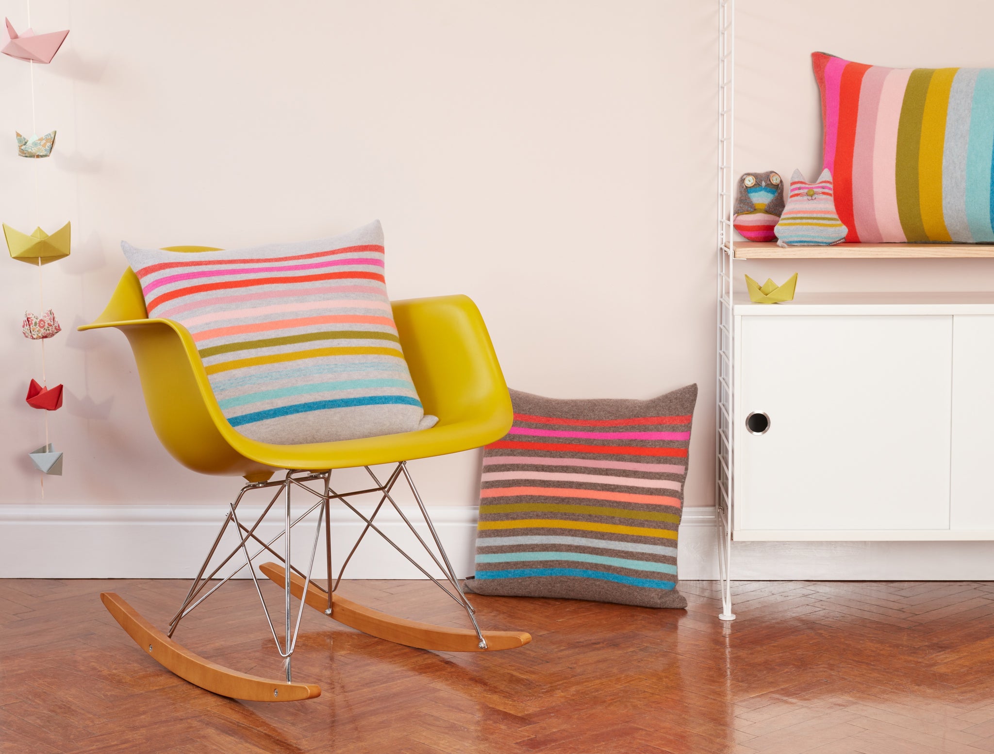 Knitted cushion handcrafted from the finest British yarn with a strong focus on quality & craftsmanship and extremely soft. A design from our Owl & The Pussy-Cat Collection, inspired by Edward Lear's 1871 poem. A tale of the love between the two title characters who marry in a land where the "bong-tree" grows after setting sail to sea, for a year and a day, in a beautiful pea-green boat.